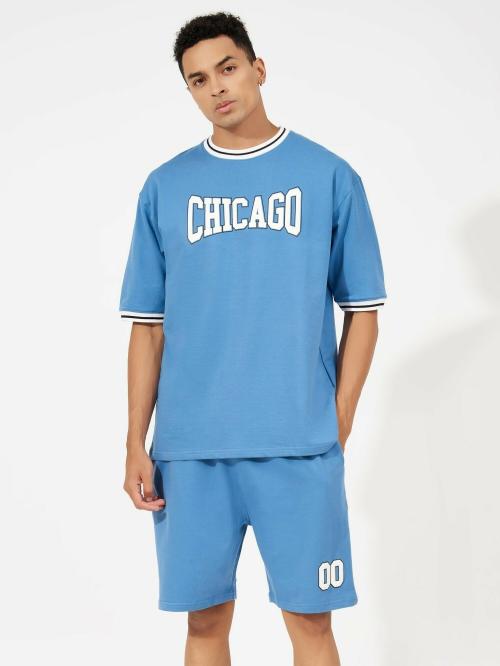 Maniac Mens Printed Round Neck Half Sleeve Denim Blue Tshirt and Shorts Cotton Co-Ords