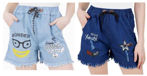 Manzon Girls Blue Printed 100% Cotton Pack Of 2 Shorts
