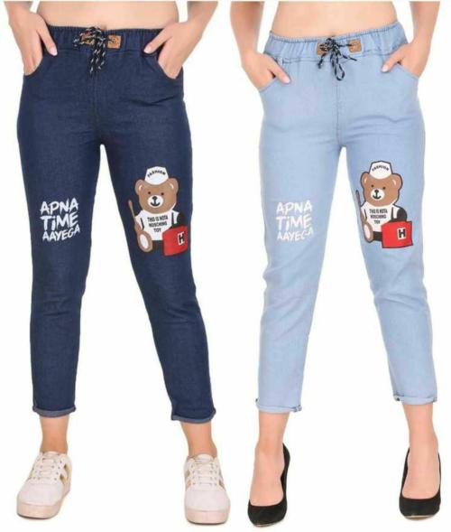 Manzon Girls Denim Printed Pack of 2 Jeans