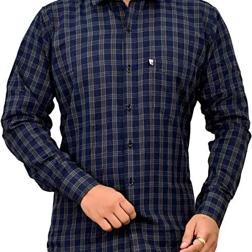Marc Laurent Men Dark Blue Checkered Cotton Blend Casual Shirt (Large)
