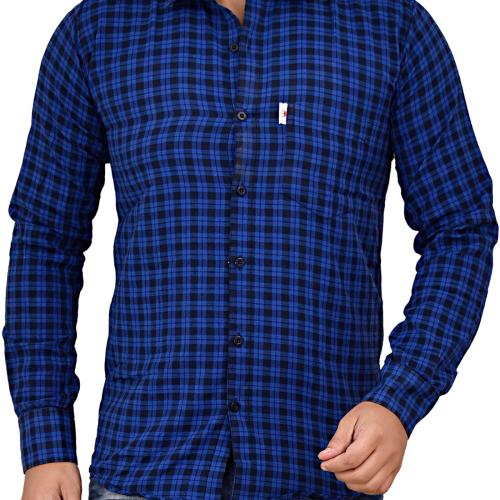 Marc Laurent Men Dark Blue Checkered Cotton Blend Casual Shirt (Large)