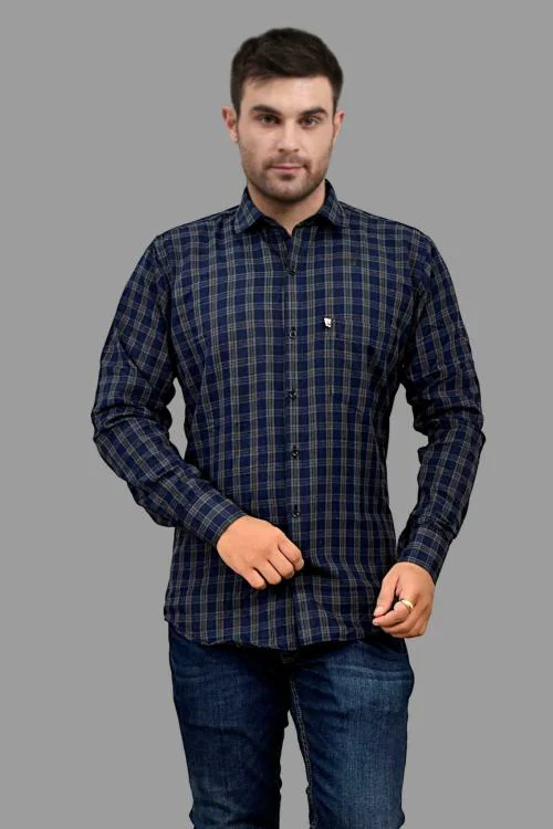 Marc Laurent Men Navy Blue Checkered Cotton Blend Casual Shirt (XXL)