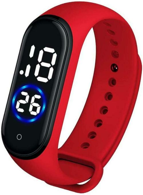 Mastrena Digital Black Dial Red Strap Watch For Boys, Girls