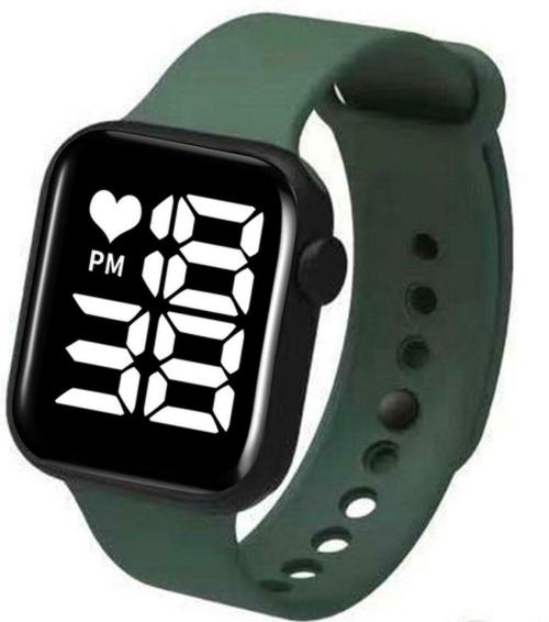 Mastrena Square Pine Needle Green LED Light Digital White Dial Black Strap Watch For Boys, Girls (MSG2249)