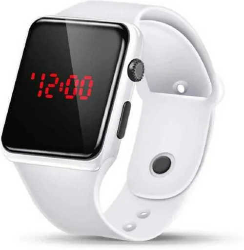 Mastrena Square Shinning Digital Black Dial White Strap Watch For Boys, Girls (MSG2062)