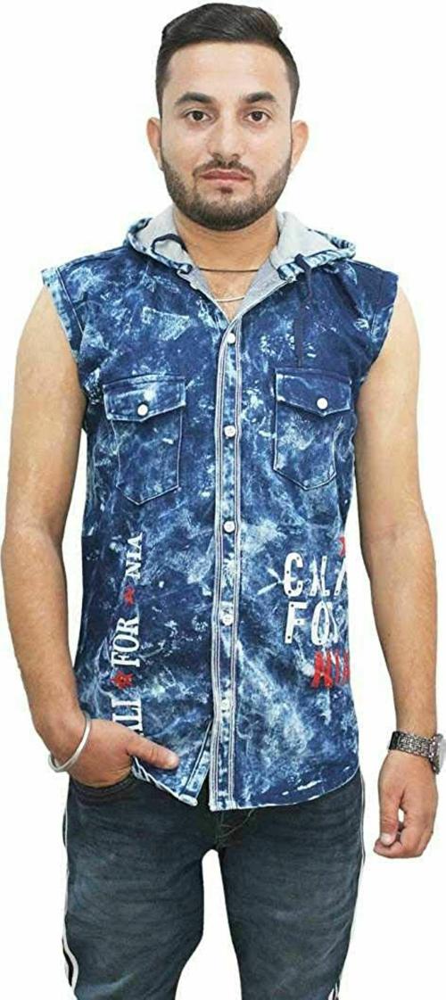 MATELCO Men Printed, Washed Casual Blue Shirt