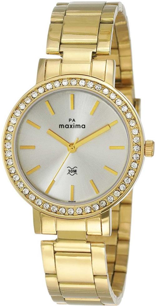 Maxima Analog Silver Dial Gold Strap Watch For Women (O-64030CMLY)
