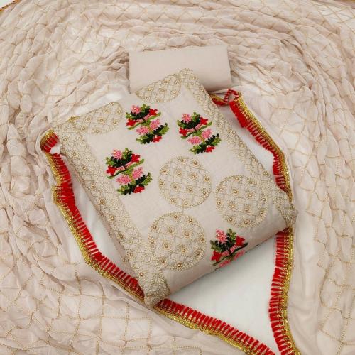 Mehzeel Fab Women Beige Cotton Silk Blend Salwar Suit Material