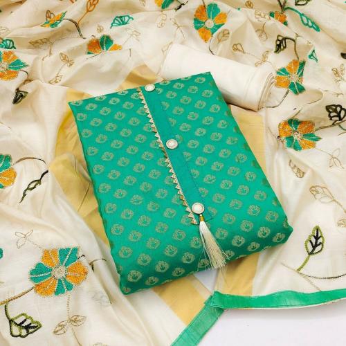 Mehzeel Fab Women Green Self Design Jacquard Salwar Suit Material