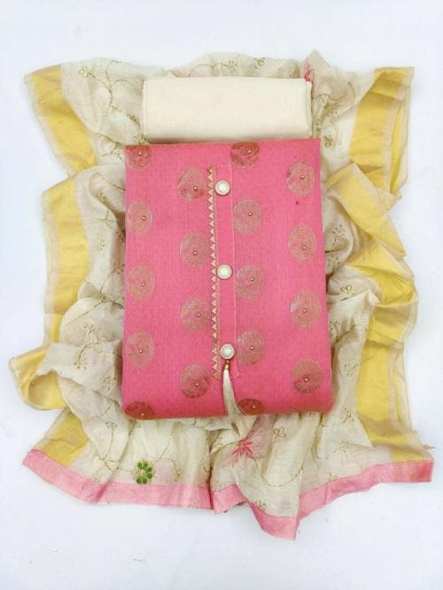 Mehzeel Fab Women Pink Jacquard Salwar Suit Material