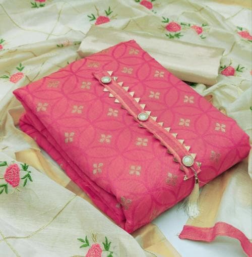 Mehzeel Fab Women Pink Self Design Jacquard Salwar Suit Material