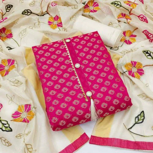Mehzeel Fab Women Pink Self Design Jacquard Salwar Suit Material