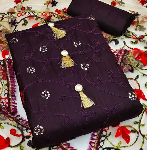 Mehzeel Fab Women Purple Embroidered Cotton Blend Salwar Suit Material