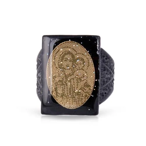 Memoir Brass Black Laminated Mother Mary Jesus Fingerring Christian Jewellery (ORKL7694)