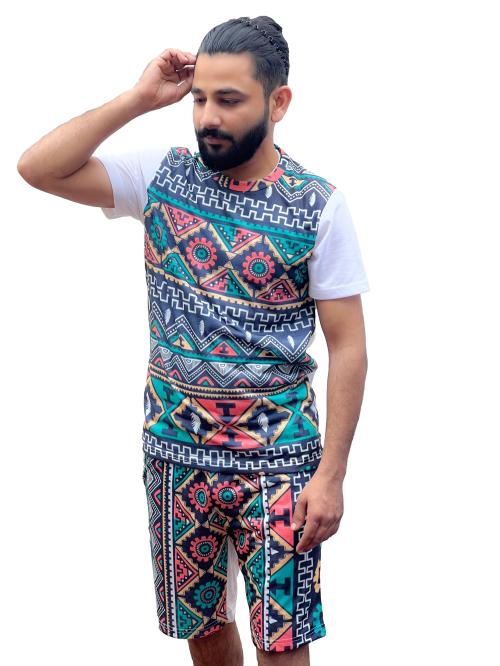 Lomoofy Men's Stylish Printed Cord-set. These co-ords are fabricated with top-grade and durable material. Made of fabric that holds its shape throughout the day, lets you have no restriction and feel relaxed. Designed to offer an energetic look, the co-ords combine the warmth of comfortable and casual feel. Offering an elevated look, it showcases a perfect fit. Specially made for Nightwear; Sleepwear, Loungewear, Picnicwear, Evening Wear, Home wear; highly comfortable wear, Comfy clothes; T-Shirt & Shorts for men.The shorts with two large deep pockets offer more space to carry your phone, wallet, or any other belongings which keep your hands free.