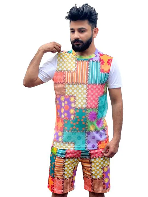 Lomoofy Men's Stylish Printed Cord-set. These co-ords are fabricated with top-grade and durable material. Made of fabric that holds its shape throughout the day, lets you have no restriction and feel relaxed. Designed to offer an energetic look, the co-ords combine the warmth of comfortable and casual feel. Offering an elevated look, it showcases a perfect fit. Specially made for Nightwear; Sleepwear, Loungewear, Picnicwear, Evening Wear, Home wear; highly comfortable wear, Comfy clothes; T-Shirt & Shorts for men.The shorts with two large deep pockets offer more space to carry your phone, wallet, or any other belongings which keep your hands free.