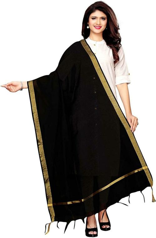 MERWE Women Black Solid Polycotton Dupatta