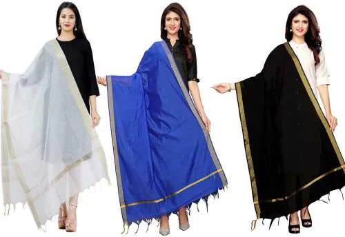 MERWE Women Multicolor Solid Poly Chanderi Pack Of 3 Dupatta