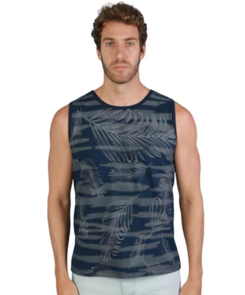 METRO STITCH leaf print mens tank Vest navy blue_XXL