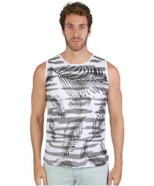 METRO STITCH leaf print mens tank Vest white_S