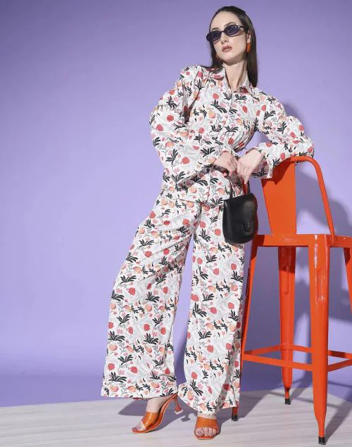 Mevika White Floral Printed Co-ords Set