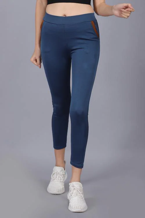 MGrandbear Stretchable Polyster Lycra army blue Yoga Pants for Women & Tights for Women (L)