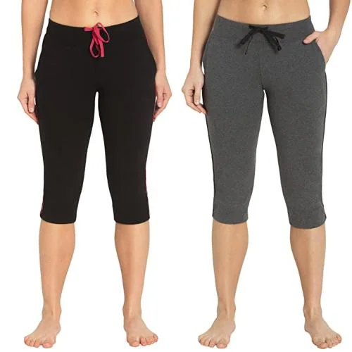 Mgrandbear Stripe Cotton Women Capri Pack of 2 WC-D1-BLK-DGRY
