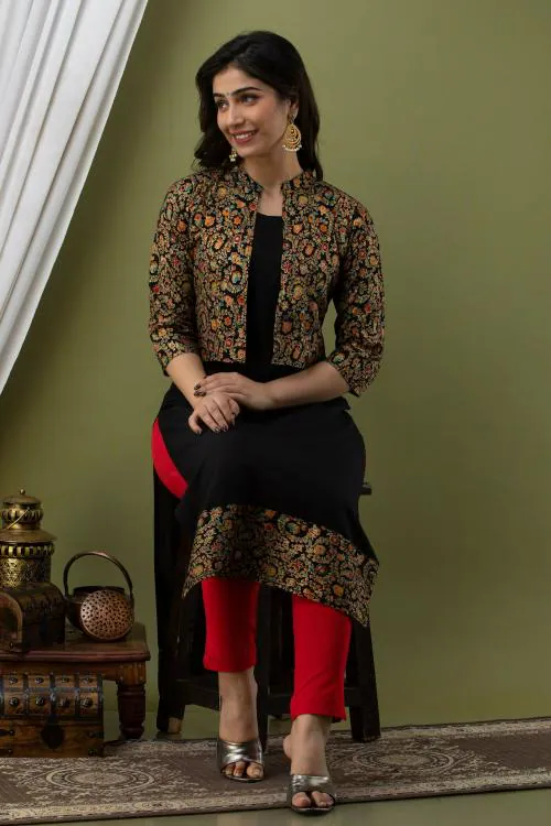 Mialo fashion Women Black Printed Cotton Rayon Blend Kurta