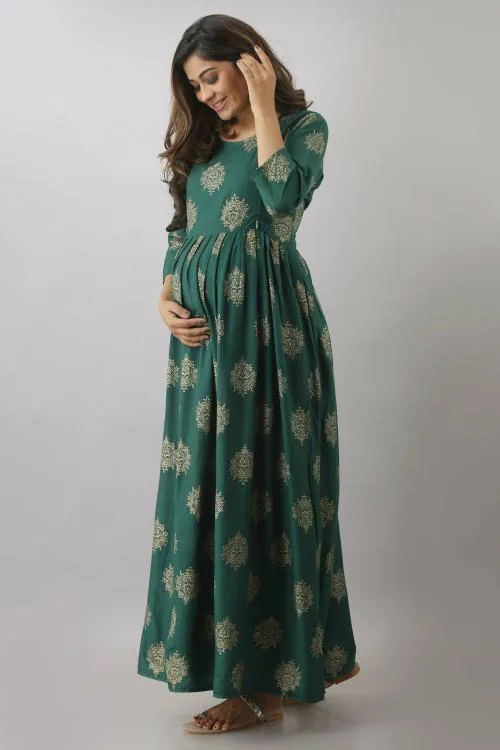Mialo fashion Women Dark Green Printed Rayon Maternity Dress