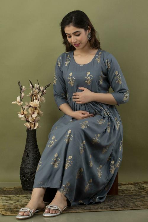 Mialo Fashion Women Grey Floral Cotton Rayon Blend Maternity Kurta