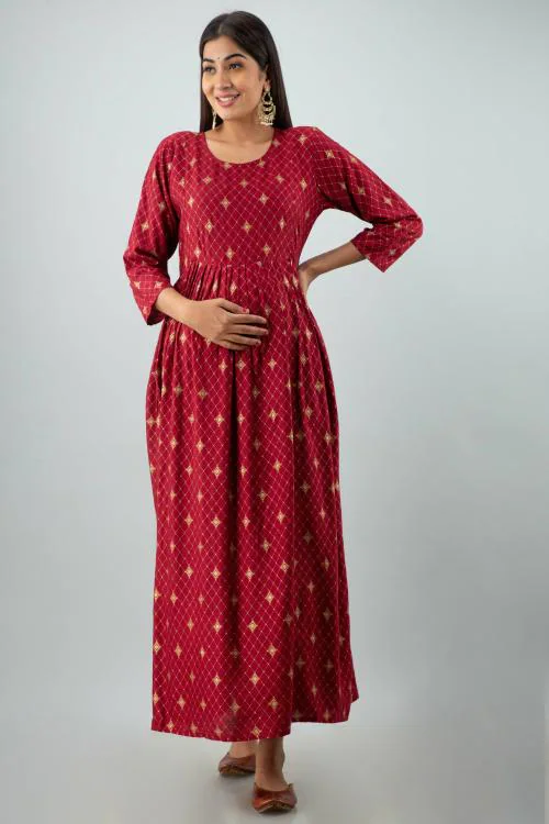 Mialo fashion Women Maroon Printed Cotton Rayon Blend Maternity Dress