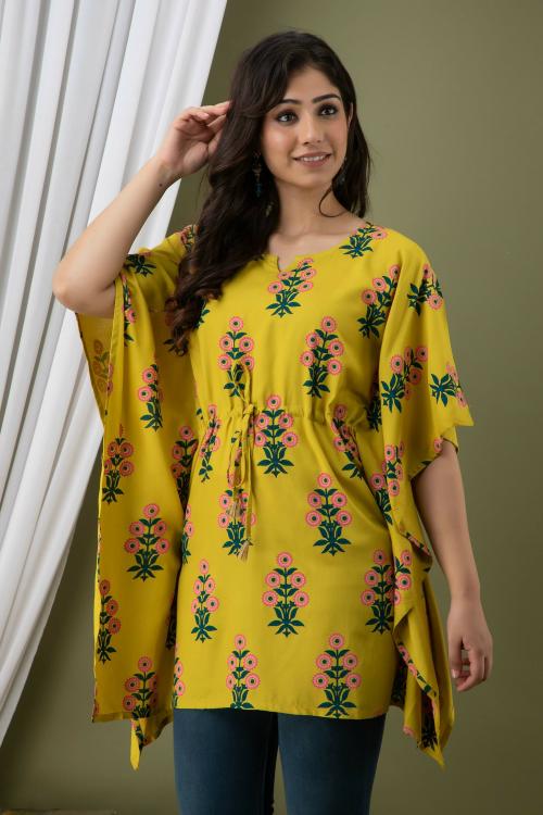 Mialo fashion Women Yellow Printed Kaftan Kurti