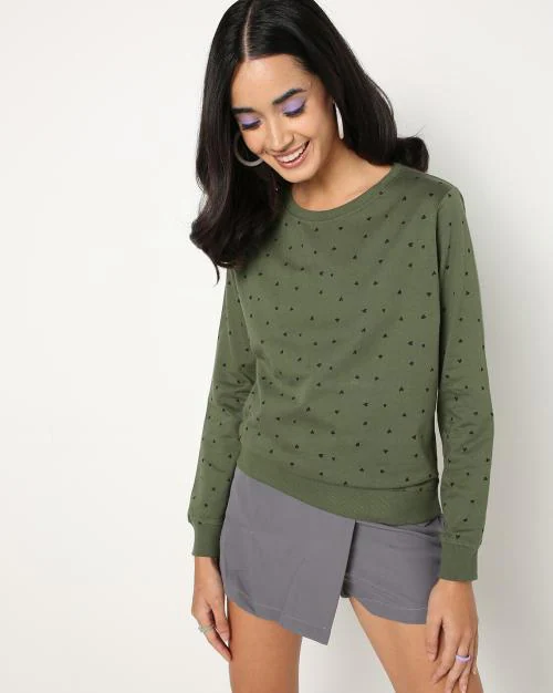Micro Print Round-Neck Sweatshirt