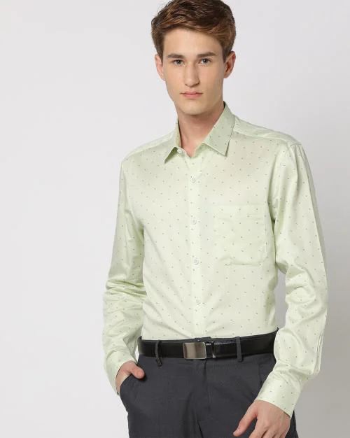 Men Micro Print Slim Fit Cotton Shirt with Patch Pocket