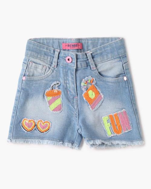 Mid-Rise Denim Shorts with Applique