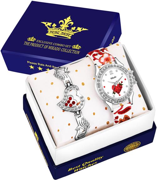Mikado Analog White Watch For Girls ,Pack Of 2