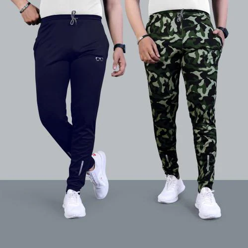 MILDTOUCH Men Blue, Dark Green Printed Lycra Blend, Polyester (Pack of 2) Track Pant