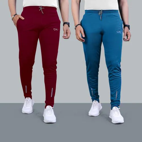 MILDTOUCH Men Maroon, Blue Printed Lycra Blend, Polyester (Pack of 2) Track Pant