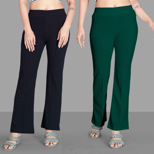 MILDTOUCH Women Black, Green Solid Lycra Blend Pack Of 2 Trousers (S)