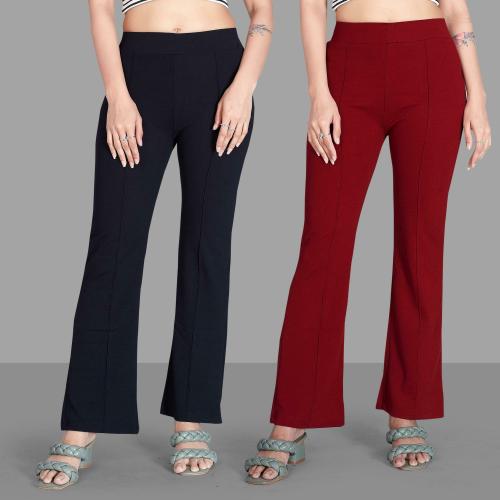 MILDTOUCH Women Black, Maroon Solid Lycra Blend Pack Of 2 Trousers (XXL)
