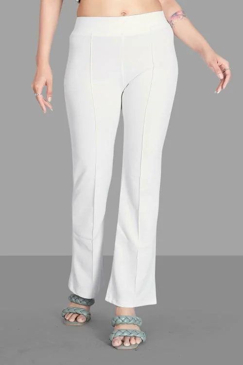 MILDTOUCH Women White Solid Lycra Blend Trouser (S)