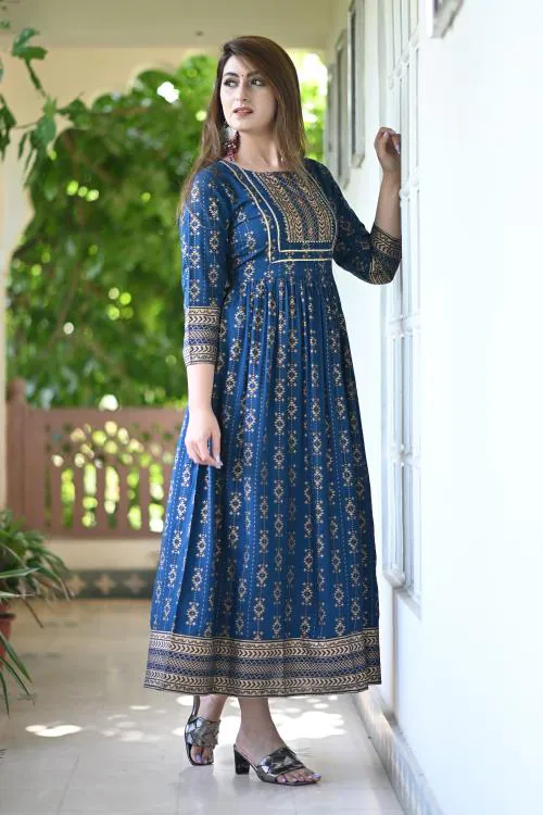 Mintmarie Women Blue Printed Viscose Kurta - 6XL