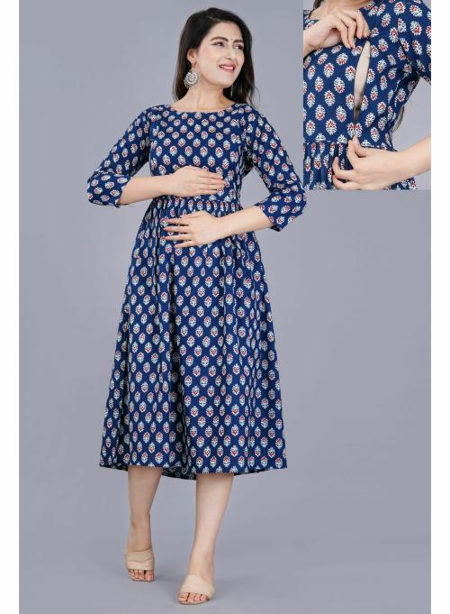 MintMarie Women's Printed Maternity/Feeding Kurti (BLUE)