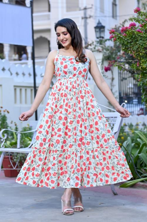 Mintmarie Women's Printed Sleeveless Long Dress (Pink Flower)