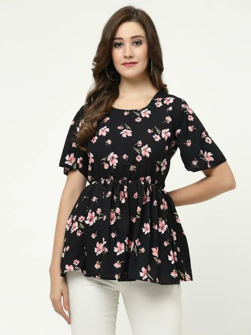 MISS AYSE Trendy Fancy Black Color Crepe Round Neck Top