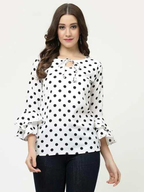 MISS AYSE Trendy Fancy White Color Crepe Tie Up Neck Top