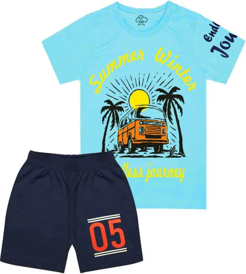 Mist N Fogg Boys Blue Graphic Cotton Blend T-shirt and Shorts (7-8 Y)