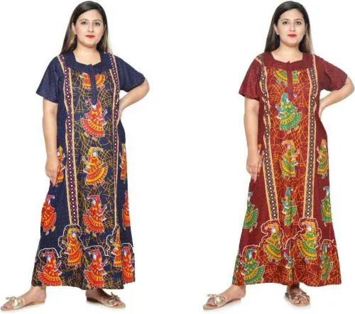 MKF Women Multicolor Printed Cotton Nighty - XL (Pack of 2)