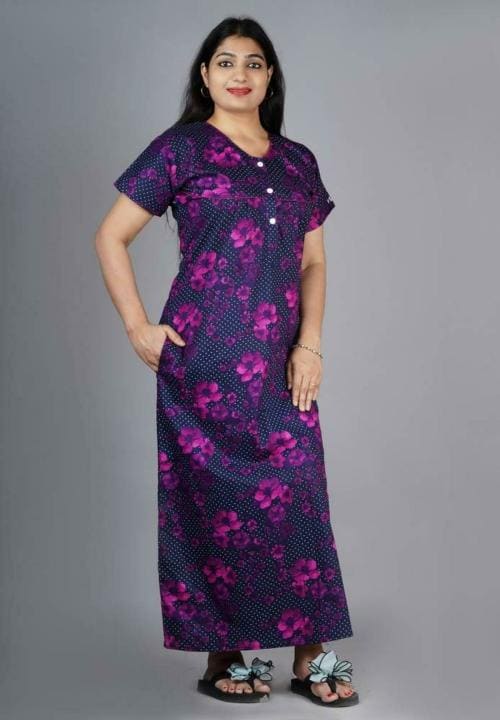 MKF Women Purple Floral Print Cotton Nighty - XL