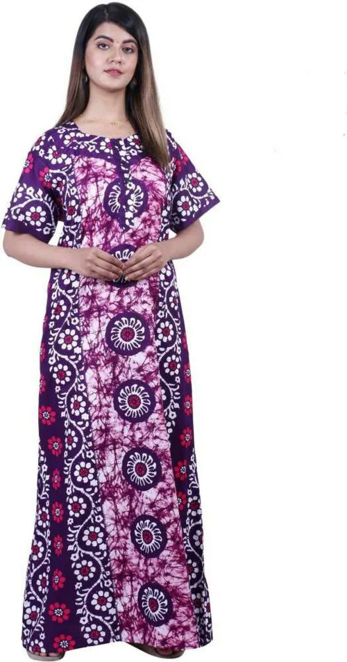MKF Women Purple Printed Cotton Nighty - L